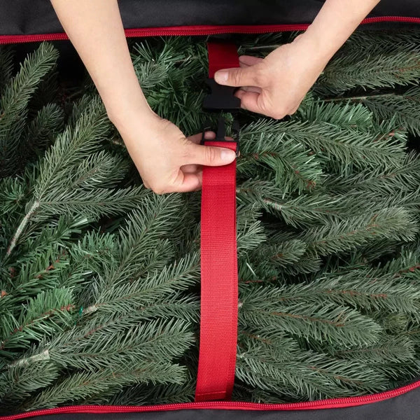 Make the Christmas tree clean up as joyous as the setup with our Holiday Christmas Tree Bag. Effortless handling is ensured with heavy-duty handles, interior and exterior straps, high-quality zippers, in-line ball-bearing wheels, and a reinforced bottom. Measuring 141L x 63.5W x 61H cm, it fits trees up to 2.7m (9ft) tall without extra space for easy storage. Crafted from water-resistant, easy-to-clean fabric, your tree stays safe until next year!